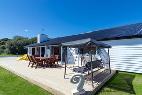 This holiday home includes well-appointed open plan living with modern furnishings. You'll love the newly fitted out kitchen with all new appliances, ideal for meals indoors. The large fireplace in the lounge will keep you cosy during the cooler months, or enjoy easy summer living with the seamless flow onto the sundeck. The outdoor area is perfect for entertaining your group, with a BBQ, a large lawn and plenty of outdoor furniture.