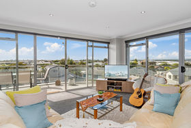 This 3-bedroom apartment is gorgeously furnished and designed to create a spacious, open, and inviting atmosphere. The living area seamlessly flows out onto the wrap-around balcony overlooking the beachfront, which captures both morning and afternoon sunshine. Complete with everything you need from a BBQ to a heat pump to a Smart TV. Everything you need this summer is here.