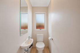 Inside, this lovely single-level ex-show home features four bedrooms, an ensuite, a well-appointed main bathroom and a separate toilet. Natural light enhances the sense of space in the open plan kitchen and double living areas, while the neutral colour palette lends the home a crisp,