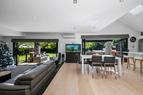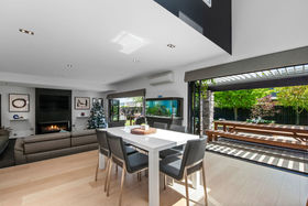 Both the kitchen/dining and living areas have large bi-fold doors flowing to an outdoor lounge area and the sheltered outdoor dining area that benefits from an automatic louvre cover; perfect for entertainment in all weathers.