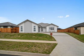 Positioned in the sought after Nga Roto Estate, this modern four bedroom, two bathroom home is a perfect example of contemporary design meeting everyday comfort. From the moment you arrive, the home's timeless aesthetic and clean lines create instant appeal, while the fully fenced section provides privacy, security, and plenty of space for families.