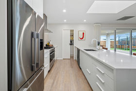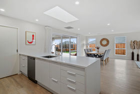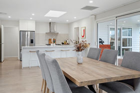 Inside, the home is designed with both function and style in mind. At its heart sits a sleek open plan kitchen complete with a generous scullery and abundant storage, ideal for both busy households and those who love to entertain. The spacious living and dining zones connect seamlessly to a large, covered deck, offering year round indoor-outdoor living whether you're hosting friends, enjoying summer BBQs, or simply relaxing with the family.